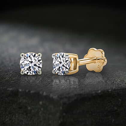Luxuriant SI-GH Lab Grown Diamond Solitaire Earring with Screw Back in 18K Vermeil Yellow Gold Plated Sterling Silver 0.50 Ct.