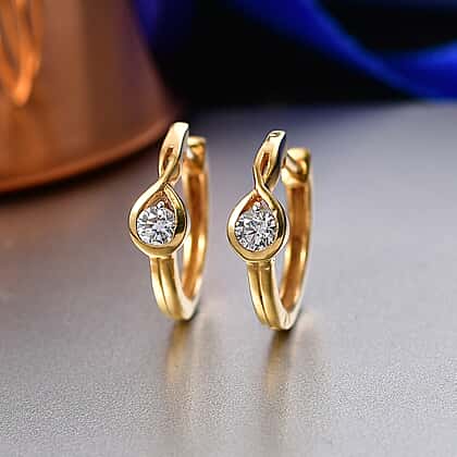 Uplift your fashion game with these Luxuriant lab-grown diamond hoop earrings, styled with a sculpted wave front and a bright centre stone. The hoop curves into a soft crossover detail, framing a round lab-grown diamond in a bezel-style setting for clean, focused sparkle. The smooth, high-polish finish keeps the look sharp, while the compact hoop size makes them easy for everyday wear. Crafted in yellow gold plating on 925 sterling silver, they bring a warm glow that pairs beautifully with other gold pieces. Finished with a secure hinged closure for a comfortable fit and confident wear.