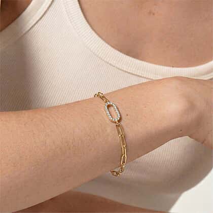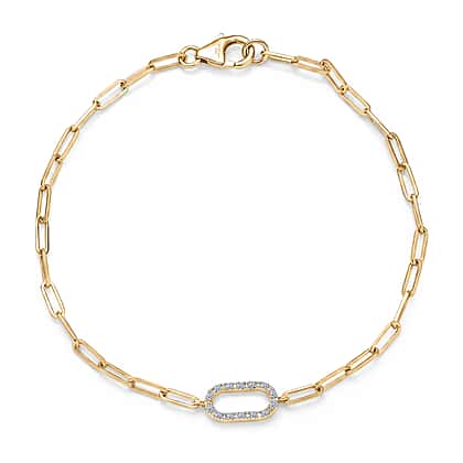 Elevate your everyday style with this luxuriant SI GH lab grown diamond paper clip bracelet, designed to add refined sparkle to any look. The sleek elongated links create a clean and contemporary design that layers beautifully or shines on its own. A delicate lab grown diamond accent enhances the centre with subtle brilliance. Crafted in 925 sterling silver with yellow gold plating, the warm finish adds richness and lasting shine. The secure clasp ensures comfortable and confident wear throughout the day. Perfect for daily styling or thoughtful gifting, this bracelet blends simplicity with understated luxury.