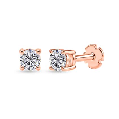 Luxuriant SI-G-H Lab Grown Diamond Solitaire Earring with Screw Back in 18K Vermeil Rose Gold Plated Sterling Silver 0.50 Ct.