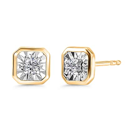 Luxuriant SI-G-H Lab Grown Diamond Solitaire Stud Push Post Earring in 18K Vermeil Yellow Gold Plated Sterling Silver