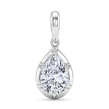 Luxuriant SI-GH Lab Grown Diamond Pear Cut Solitaire Pendant in Rhodium Overlay Sterling Silver 1.07 Ct.