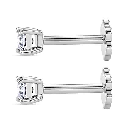 Luxuriant VS-EF Lab Grown Diamond Earring with Screw Back in Rhodium Overlay Sterling Silver 0.20 Ct.