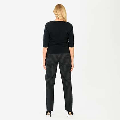 The Marina Kaneva Pinstripe Straight Leg Trousers offer a chic and professional look, perfect for work or smart-casual occasions. Featuring a stylish pinstripe pattern and straight leg fit, these trousers are made with a comfortable and durable fabric that provides a flattering silhouette. The waistband is designed for ease and comfort, while the black colour ensures they pair well with any top. With their versatile design, these trousers can be dressed up or down to suit any occasion.