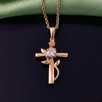 Moissanite Cross Pendant with Chain (Size 20) in Yellow Gold Tone