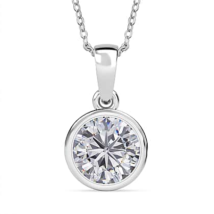 D'Joy Moissanite Pendant with Chain (Size 20) in Rhodium Overlay Sterling Silver 1.79 Ct.