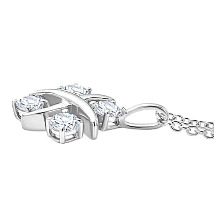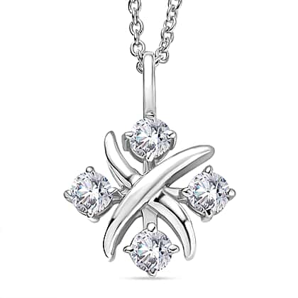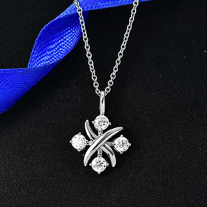 D'Joy 1 Ct. Moissanite Crisscross Cluster Pendant with Chain (Size 20) in Platinum Overlay Sterling Silver