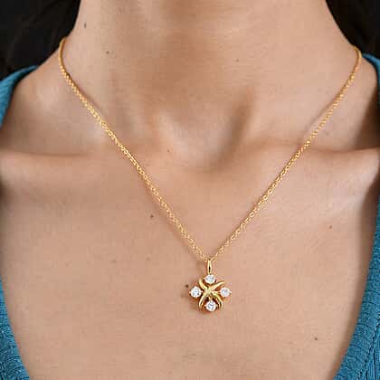 D'Joy Moissanite Crisscross Cluster Pendant with Chain (Size 20) in Yellow Gold Tone 1.00 Ct.