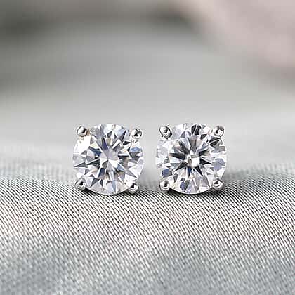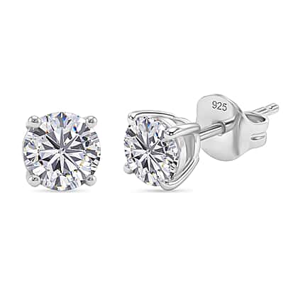 Moissanite Solitaire Stud Earring with Push Back in Platinum Overlay Sterling Silver 1.20 Ct.