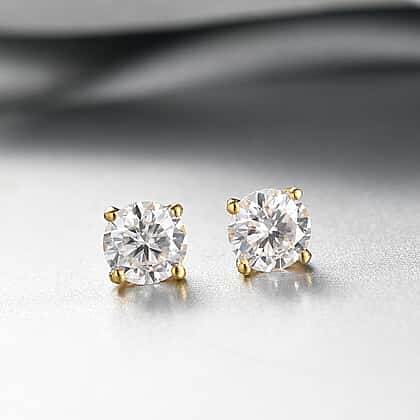 Moissanite Solitaire Stud Earring with Push Back in Yellow Gold Plated Sterling Silver 1.20 Ct