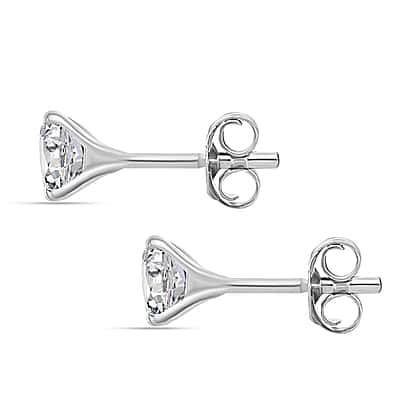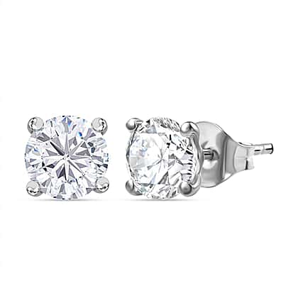 Moissanite Solitaire Stud Push Post Earrings in Rhodium Overlay Sterling Silver