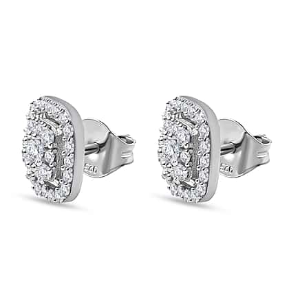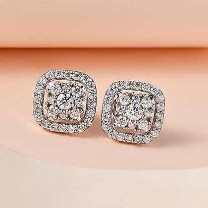Moissanite Stud Earrings in Platinum Overlay Sterling Silver