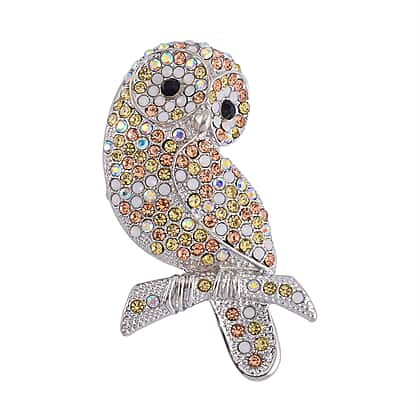 Add a bit of sparkle to your look with this stunning Multi-Colour Crystal Owl Brooch. Its intricate design, sprinkled with shimmering crystals, catches the light beautifully, making it the perfect finishing touch to any outfit. Whether you're dressing up for a special event or want to add a little glamour to your everyday style, this brooch is a great choice. It's easy to pin onto your jacket, coat, or scarf, instantly elevating your wardrobe with its elegant, eye-catching appeal.