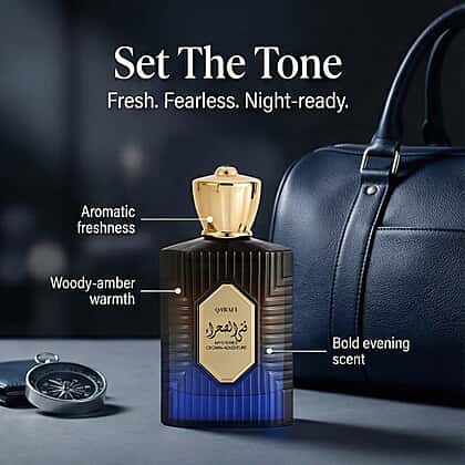 Built around depth and discovery, QAWAFI Mysteries Crown Adventure Eau de Parfum offers a bold, woody fragrance with a refined edge. Agarwood and incense create a smoky, grounding opening, leading into a warm heart of sandalwood and amber. As it settles, rose and saffron emerge softly, adding contrast and richness without overpowering. The composition feels confident, layered and quietly opulent. Presented in a striking dark bottle with sculpted detailing, this 100ml eau de parfum makes a statement on any shelf. Ideal for those who enjoy distinctive scents, it suits cooler days, evenings and moments that call for something memorable and self-assured.