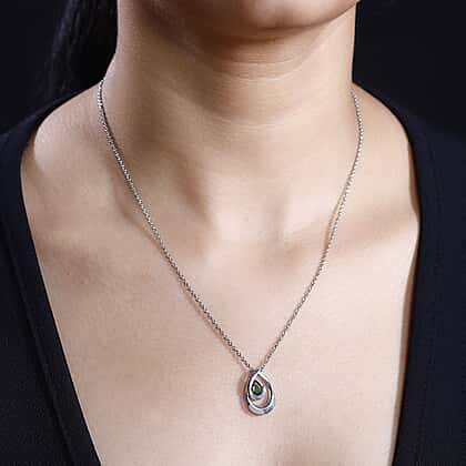 Natural Chrome Diopside Pendant with Chain (Size 20) in rhodium Sterling Silver 1.000 Ct.