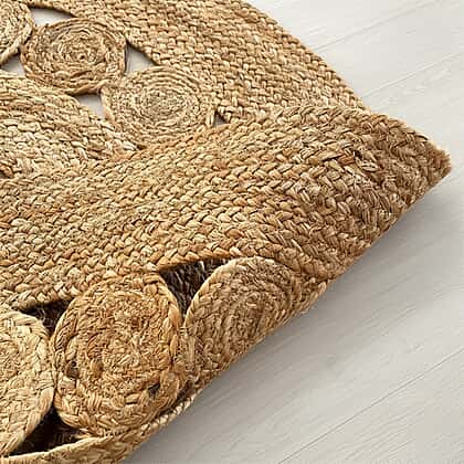 - Eco-friendly jute round-shaped rug crafted from natural jute fibres.
