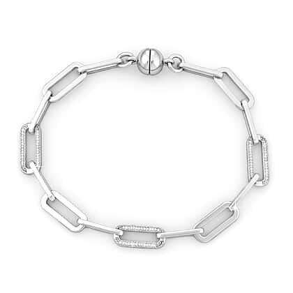 Natural White Diamond Bracelet with Magnetic Clasp in Rhodium Overlay Sterling Silver 7.5 Inch
