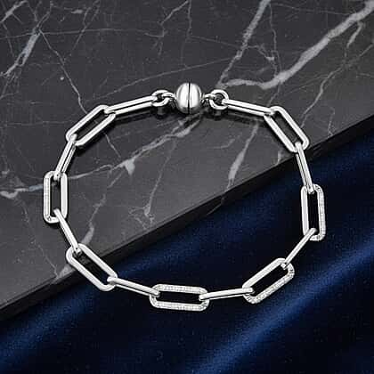 Bring timeless sophistication to your jewellery box with this natural white diamond paperclip bracelet, crafted in rhodium overlay 925 sterling silver. The elegant 7.5-inch design sparkles with hand-set natural diamonds known for their natural fire and rarity, each adding a refined shimmer to your wrist. Its rhodium-plated sterling silver offers a hypoallergenic, tarnish-resistant finish that’s ideal for daily wear and sensitive skin. Designed for ease, the bracelet features a sleek magnetic clasp that blends security with simplicity. Whether styled solo or stacked, this bracelet evokes confidence and understated luxury—perfect for marking milestones or elevating everyday looks.