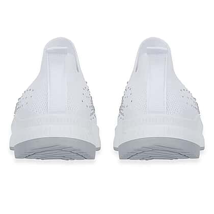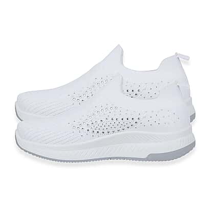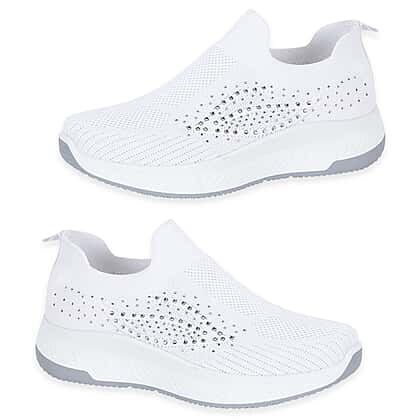 Step into comfort and subtle shine with slip-on shoes designed to keep your everyday style effortless and polished. These lightweight leisure shoes feature a flexible knit upper that adapts to your foot, offering a secure yet breathable fit throughout the day. The slip-on design makes them easy to wear, perfect for busy routines where convenience matters just as much as comfort. Decorative diamante detailing adds a gentle sparkle across the upper, giving the shoes a stylish edge while maintaining a clean and versatile look. Paired with a cushioned sole, they provide reliable support and help reduce strain during extended wear. The white finish makes them easy to pair with a wide range of outfits, from casual looks to more put-together everyday styling. Choose a pair that combines comfort, style, and practicality in one simple step.