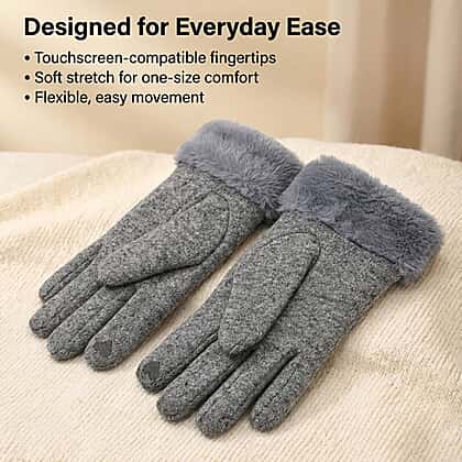 There’s something reassuring about slipping into gloves that instantly feel warm, and this grey pair blends 70% cashmere with an ultra soft faux fur cuff for a snug, easy start to your day. The understated shade works with coats and jumpers you already own, while the stretch fit gently hugs the hands without feeling tight. Touchscreen-friendly fingertips let you answer calls or tap directions without pulling them off. Inside, the smooth lining helps trap heat, making these gloves ideal for morning school runs, weekend strolls, or simply adding a comfortable finishing touch to your winter wardrobe.