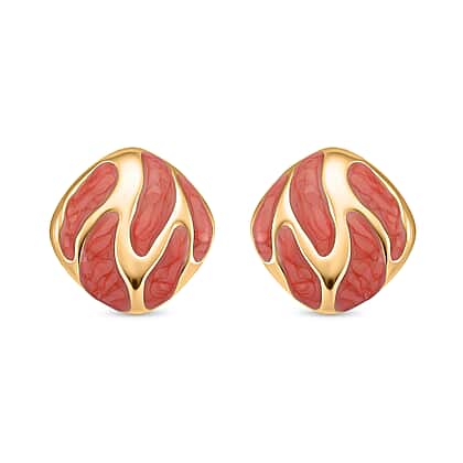 New Retro Luxury Square Drip Coral Enamel Earrings with Push Back in Yellow Gold Plated