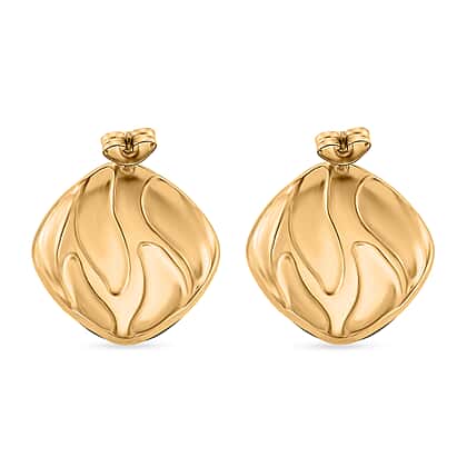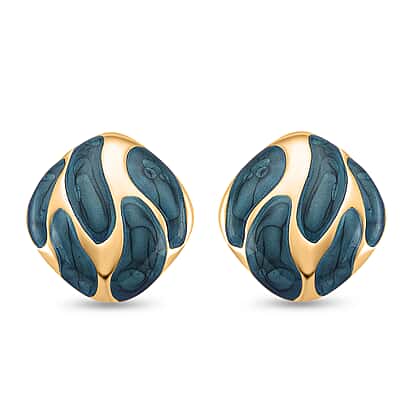 Bold and chunky earrings are an easy way to make a statement! Case in point are these drip green enamel earrings that feature flowy designs and swirls. These designs help add a sense of movement and softness to the design. Crafted in yellow gold plated sterling steel, these studs feature a square-like silhouette with rounded ends. They come with a push-back closure which makes it very easy to put on or take off. These earrings are perfect for women who believe 'fashion is an art in itself'.