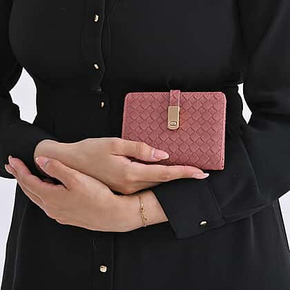 Designer Inspired-Compact RFID Protected Wallet with Gold Clasp - Red
