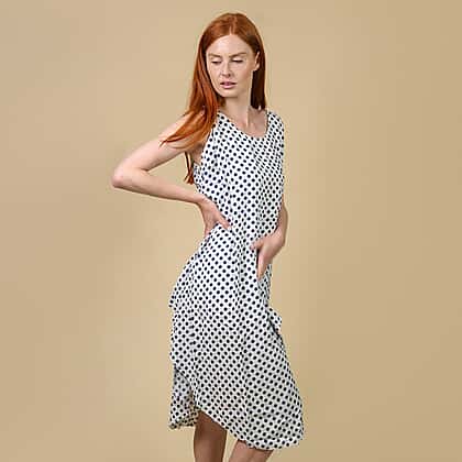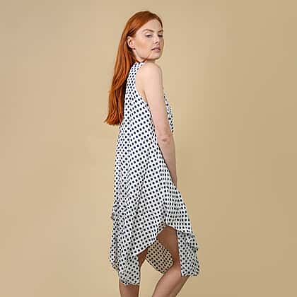 NOVA OF LONDON Polka Dot Printed Dress with Asymmetric Dress - White and Navy