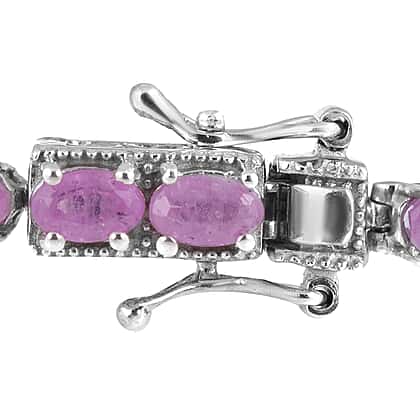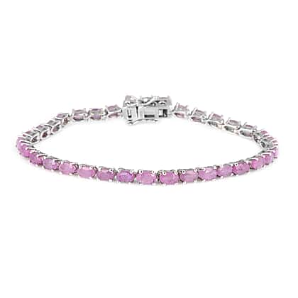 Pink Sapphire Bracelet (Size - 7) in Platinum Overlay Sterling Silver 11.52 Ct, Silver wt. 8.00 Gms