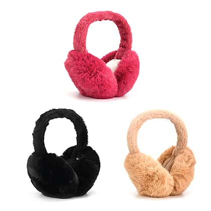 Set of 3 Cosy Ear Pads for Winter (Beige, Rose Pink and Black)