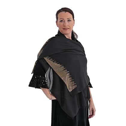 A statement accessory designed to elevate evening styling, this Limited Collection sparkling sequin shawl adds a refined shimmer to your look. Designed to drape beautifully over the shoulders, it offers both coverage and style with a graceful flow. The subtle sequin detailing along the borders creates a soft, light-catching effect without overpowering the design. Its lightweight feel ensures comfortable wear, making it perfect for layering over dresses or occasion outfits. Ideal for formal events or special evenings, this shawl brings a polished finishing touch to any ensemble.