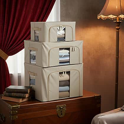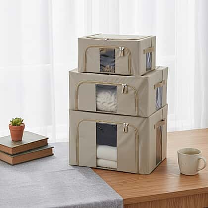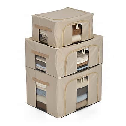 Upgrade your home organisation with this Set of 3 Foldable Fabric Storage Boxes, designed in three practical sizes to neatly store everything from clothing and bedding to toys, linens and seasonal essentials. With capacities of 24L (Small), 44L (Medium) and 66L (Large), you’ll have the perfect storage option for every need.