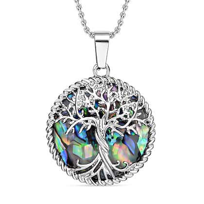 Natures Treasures - Abalone Shell Tree Of Life Pendant with Chain (Size 20)