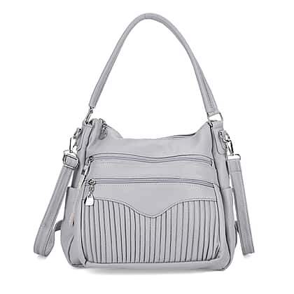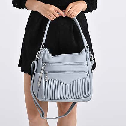 Pleated Structure Satchel Shoulder Bag with Top Handles - Baby Blue