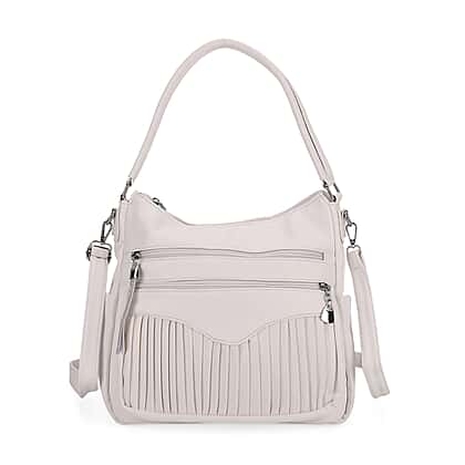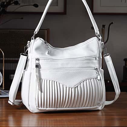 Pleated Structure Satchel Shoulder Bag with Top Handles - White
