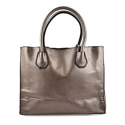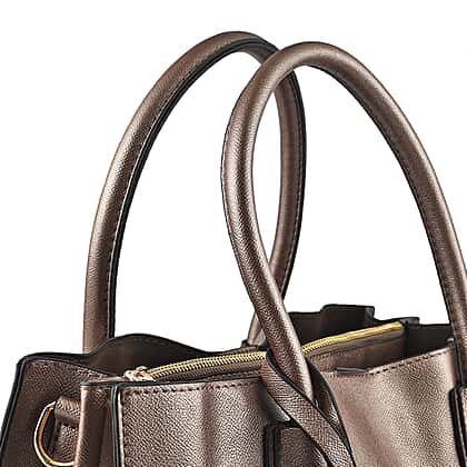 Elevate your office look with this simple and stylish plain bronze tote bag. This bag is made from a polyurethane material which is durable and lightweight. This bag has a small wallet attached to it with button closure. This has a zipper closure and dual drop handle for more convenient use. Upgrade your fashion accessories game with the plain tote bag.