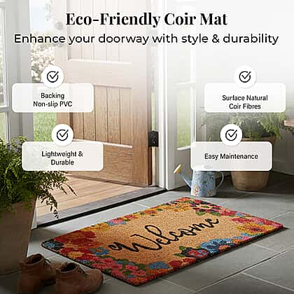 Welcome Print Coir Door Mat (Size 40x60 cm) - Pink & Multi