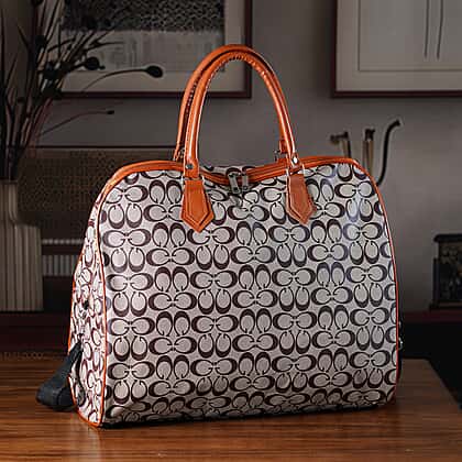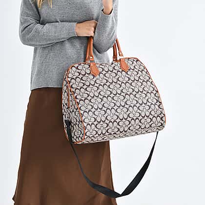 Setting off for a short break feels far simpler with this light-brown geometric-pattern duffel bag. Crafted from smooth leatherette with a polished finish, it offers a roomy interior designed to hold outfits, toiletries and travel essentials without bulk. A zipped exterior pocket keeps your quick-grab items close, while the 14cm handles feel comfortable in hand. When you need hands-free ease, the detachable 100cm strap offers welcome support. Ideal for weekends away, visiting family, or overnight work trips, this travel bag strikes a smart balance between capacity, comfort, and everyday convenience.