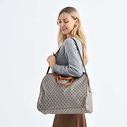 Travelling feels refreshingly simple with this light black geometric travel duffle bag, designed for women who want practicality wrapped in a sleek, modern look. The leatherette exterior keeps its shape beautifully while offering a generous interior that can carry weekend outfits, toiletries, and travel essentials. A zipped outer pocket provides convenient access to your must-reach items, and the 14cm handles sit comfortably in the hand. For moments when you want added freedom, the detachable 100cm shoulder strap offers effortless support. Ideal for overnight stays, city breaks or work trips, this bag blends everyday function with a clean, stylish finish.