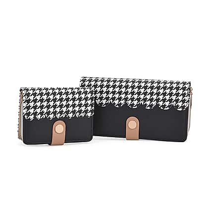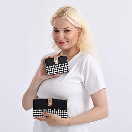 November Special Deal- DESIGNER INSPIRED - Set of 2 Houndstooth Design Wallet - BlackWhite