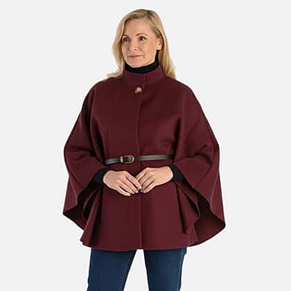 Pure And Natural Classic Cape With Belt (One Size) - Wine