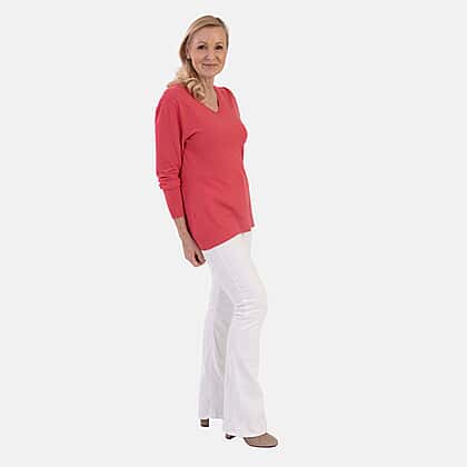 Pure And Natural Super Soft V-Neck Jumper (Size 10) - Coral