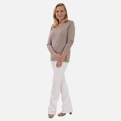Pure And Natural Super Soft V-Neck Jumper (Size 10) - Oatmeal