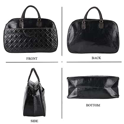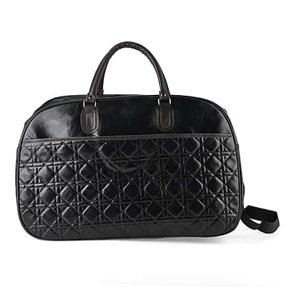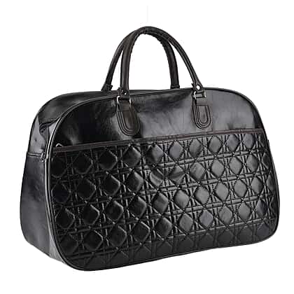 Quilted Weekender Travel Style Duffle Bag with Shoulder Strap - Black