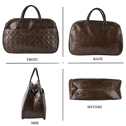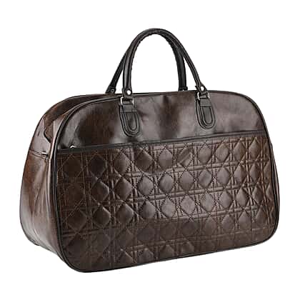 Quilted Weekender Travel Style Duffle Bag with Shoulder Strap - Dark Coffee