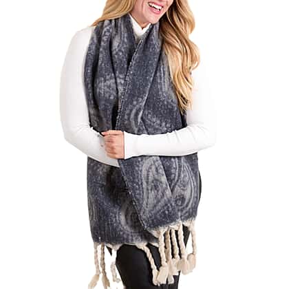 Soft, oversized, and unapologetically chicthis QED grey abstract print scarf brings instant attitude to your cold-weather look. Made from 100% polyester, it feels plush without the bulk, wrapping effortlessly around the neck or draping like a statement layer. The charcoal paisley print adds a moody, artistic twist, think boho energy with a polished city finish. Understated, intriguing, and easy to pair with everything.Perfect with a white turtleneck, leather jacket, or oversized blazer, this piece moves easily from coffee runs to weekend travel. Warm, lightweight, and endlessly wearableit’s the kind of accessory every closet needs.