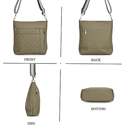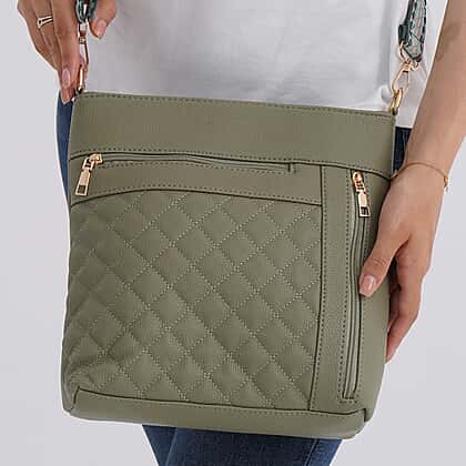 Quilted Diamond Pattern Crossbody Bag with Adjustable Strap - Green