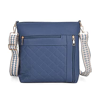 Quilted Diamond Pattern Crossbody Bag with Adjustable Strap - Denim Blue