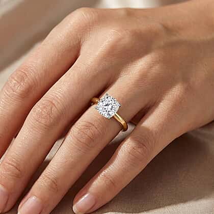Rachel Galley SGL Certified VS-EF Lab Grown Diamond Cushion Cut Ring in 18K Vermeil Yellow Gold Plated Sterling Silver 1.00 Ct.