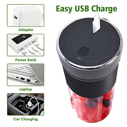 Rechargeable and Portable 350 ml Juicer Blender with Three Blades - Black